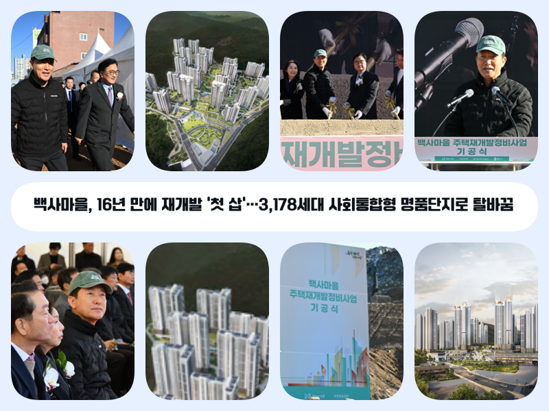 백사마을은 올해 4월 주민의 염원과 서울시의 노력으로 2009년 재개발정비구역 지정 이후 16년 만에 재개발정비계획(안)이 확정되며 사업 정상화의 신호탄을 쏘아 올렸다. 이로써 백사마을에는 지하 4층~지상 35층의 26개동 총 3,178세대 자연 친화형 공동주택 단지가 조성된다.
