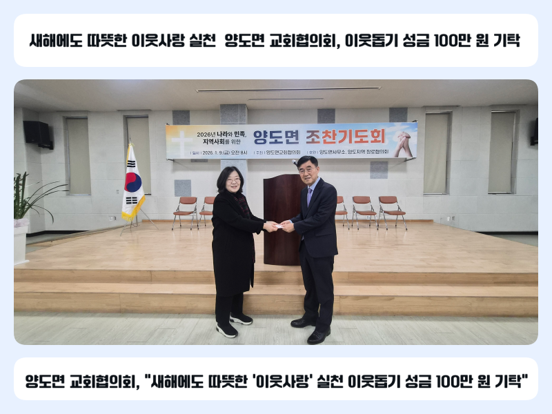 양도면 교회협의회, "새해에도 따뜻한 '이웃사랑' 실천 이웃돕기 성금 100만 원 기탁" |