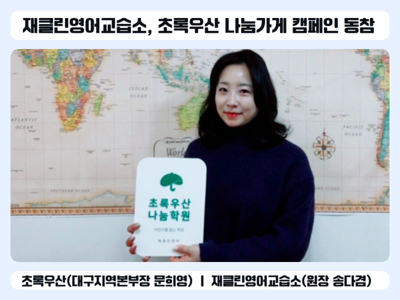 재클린영어교습소, 초록우산 나눔가게 캠페인 동참 |