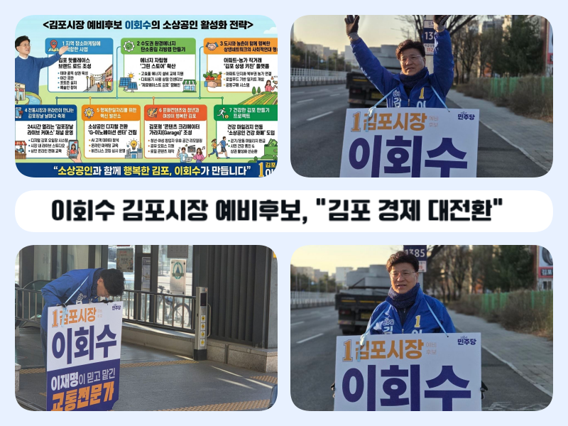 이회수 예비후보는 “민생경제의 뿌리인 소상공인 경제와 미래를 여는 신성장 산업을 동시에 육성하고, 디테일한 밀착형 정책이 더해져야만 김포 경제가 확실히 살아난다”며, “현장의 절박한 목소리와 혁신적인 아이디어를 정책에 온전히 담아내, 시민의 지갑을 채우고 돈이 도는 풍요로운 김포를 반드시 만들겠다”고 강조했다.