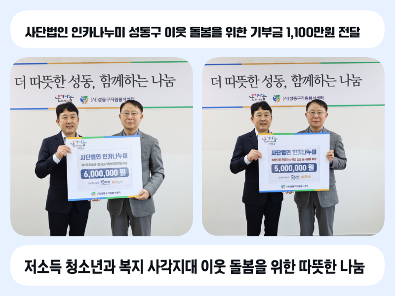 사단법인 인카나누미 성동구 이웃 돌봄을 위한 기부금 1,100만원 전달 |