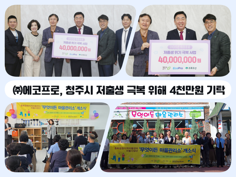 ㈜에코프로, 청주시 저출생 극복 위해 4천만원 기탁 |